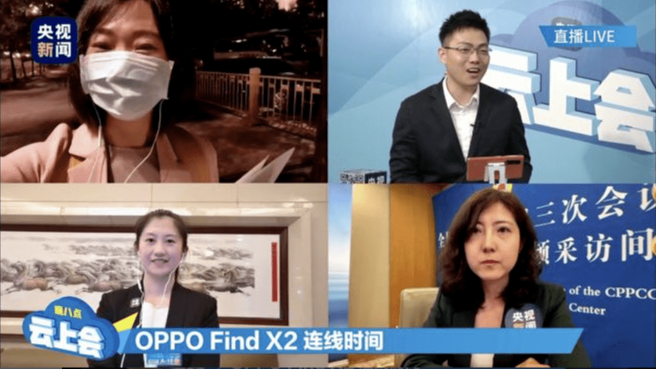 (央视新闻采用 OPPO Find X2 5G手机进行直播连线)
