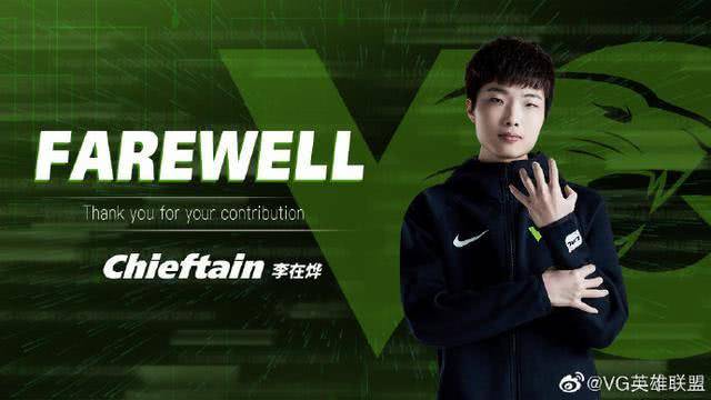 原标题:英雄联盟:VG官宣——打野选手Chieftain,以自由人身份离队