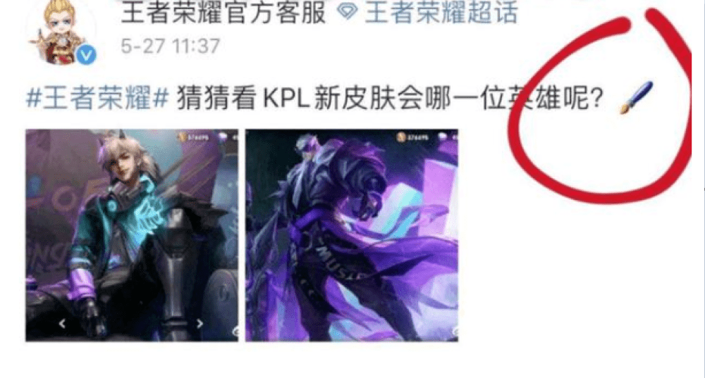 不过今天也是正式明确了,本次上线的KPL皮肤不是公孙离的新皮肤,而是属于上官婉儿。今天王者荣耀官方客服的微博也是通过一个毛笔,来正式透露下一款KPL皮肤的英雄人选。在王者荣耀中,与毛笔相关的英雄,就只有上官婉儿了。另外王者荣耀爆料君也确定了,本届KPL即将上线的新皮肤就是上官婉儿。