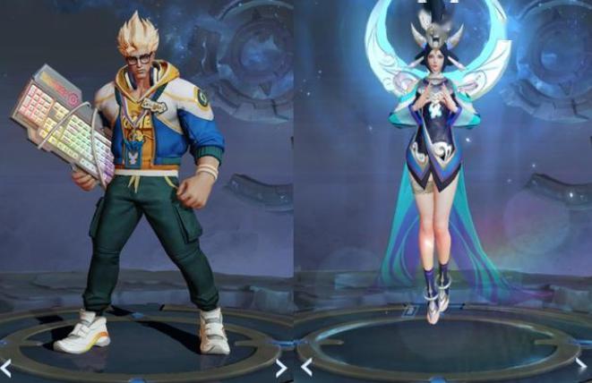 这两款皮肤分别是典韦的蓝屏警告以及女娲的朔望之晖,以礼包的形式商家战令兑换商店,打开礼包就有概率获得这两款皮肤~