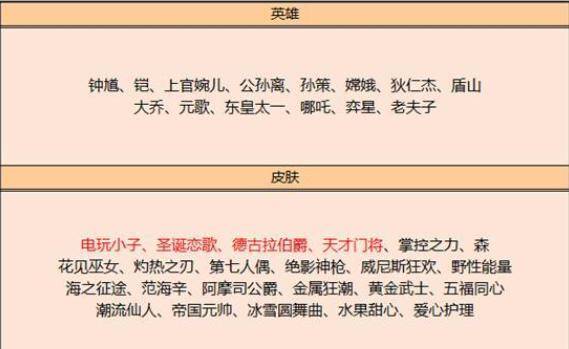这次更新的英雄以及皮肤如图下: