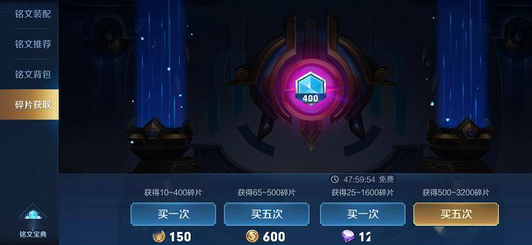 金币抽取铭文,单抽1次要150金币,5次要600金币,分别降低了50金币和200金币,这种金币的回收方式也是目前比较多的玩家愿意消费的途径之一。