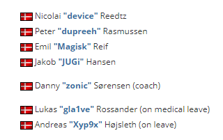 随着Xyp9x进入休假,Astralis目前阵容如下: