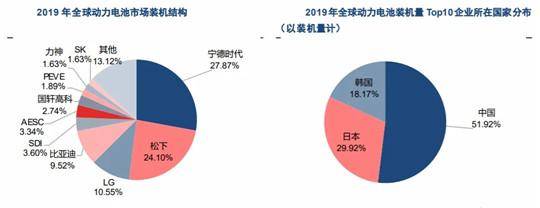 欧洲新能源汽车市场重回快速发展轨道,势必对动力电池产业链有一股强劲的带动作用。而根据SNE research统计数据显示,2019年全球动力电池出货量前十企业占据全球出货量86.88%的份额,前十企业均为中日韩企业。同时上游材料供应商也几乎都分布于中日韩地区。
