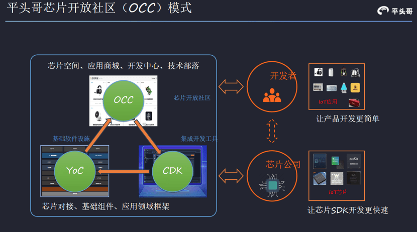 此外,平头哥还推出OCC 1520计划,加速合作伙伴快速创新,共同构建AIoT芯片生态。何为“1520”?简单说就是,“对于芯片公司而言,只要轻松地对接OCC平台,即可以获取海量的应用资源,拓宽自己芯片的应用领域。对于方案公司而言,一旦注册OCC,即可以使用面向领域的应用开发平台,应用开发平台实际上已经完成了80%的产品开发工作,方案公司只要聚焦完成另外20%的创新开发。”一言以蔽之,“1520也就是,1天上手,5天出原型,20天出产品。”
