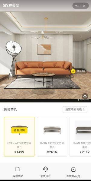 进入天猫3D购后,消费者可以“站在”任意货架前,360度查看商品款式、价格,看中商品还可一键加入购物车。在天猫3D购中,消费者还可以对沙发、茶几、地毯等家居商品自由搭配,提前预览放在自家中的真实效果。