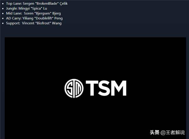 首发阵容中还有比尔森、小王等大家熟悉的选手,不过有粉丝发现了一个有趣的点,那就是TSM现在的阵容,有一大半都是华裔。Doublelift是大家都知道的,另外,打野Spica和辅助Biofrost也是华裔。