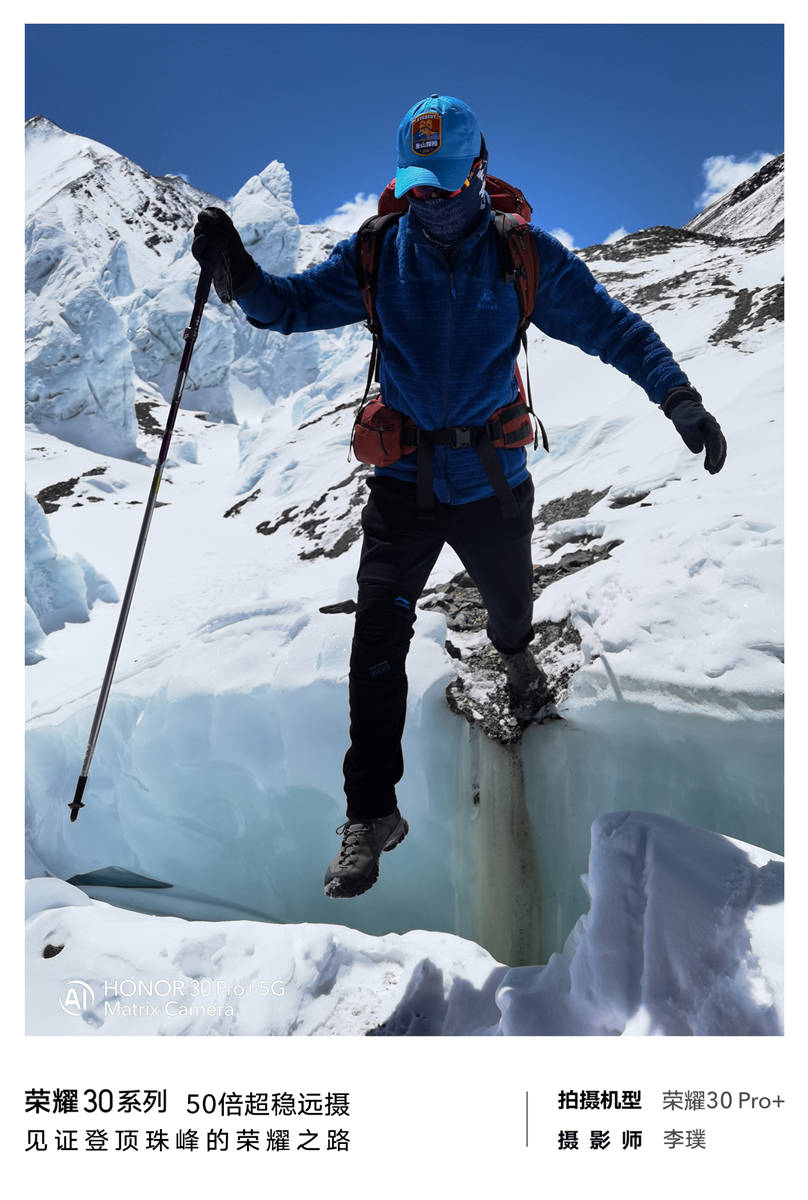 在登顶过程中,登山队员使用荣耀30系列手机记录雪域高原的震撼景观,展现了荣耀手机超凡的影像力。荣耀30 系列全系搭载50倍长焦,通过业内最强的光学镜头+感光元件+算法+芯片精密协同的一体化系统级影像技术方案,带来领跑行业的拍照表现力。特别是在50倍超级变焦、OIS双防抖、AI长焦画质增强、最高达全像素八核对焦技术等加持,更加从容的面对高原拍照挑战,让绝美风景成功定格。