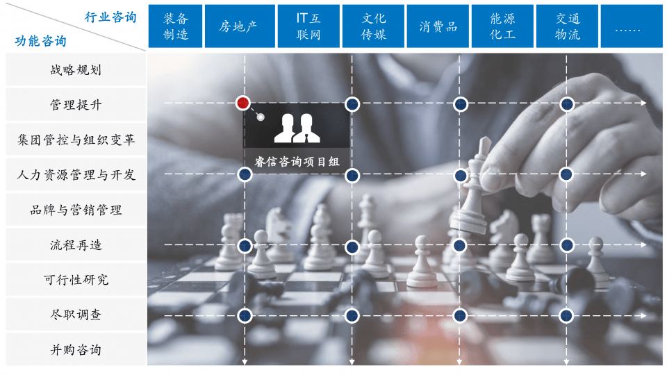 睿信咨询在多个行业和专业服务领域能够为客户提供全方位综合咨询服务。睿信咨询的咨询团队,致力于各个行业与领域的专业咨询服务,从金融服务到政府机构的多个行业和领域均以形成了深厚的专业积淀。睿信咨询70%的项目来自老客户的持续合作,而且,依托睿信咨询的专业服务,众多新的客户也正成为睿信咨询的老客户——携手共进、共同发展。