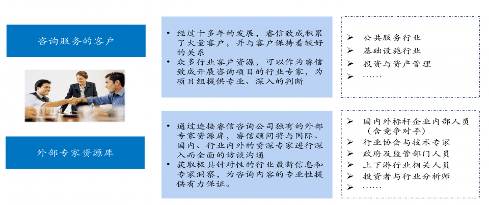 睿信咨询拥有国内最顶级的专家库合作资源——可以在24小时之内呼叫到相关行业内的一线专家,为项目提供最新的一手资讯。