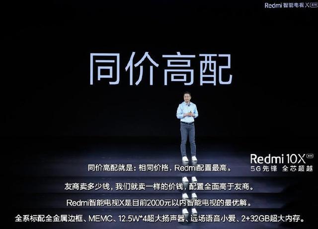 日前,在Redmi新品发布会上,Redmi X系列电视在所有公开价格中,全部对标友商的荣耀智慧屏X1系列。对于Redmi品牌总经理卢伟冰来说,关于价格只有一个标准,那就是“友商未来什么价钱,我们就卖什么价钱!”