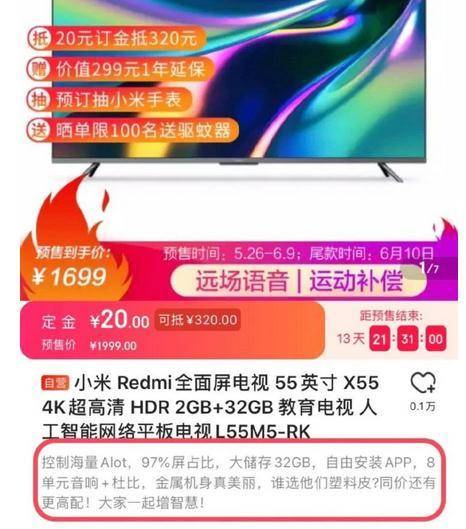 不仅如此,Redmi智能电视在京东平台上的文案也意有所指:“金属机身真美丽,谁选他们塑料皮?同价还有更高配,大家一起增智慧!”