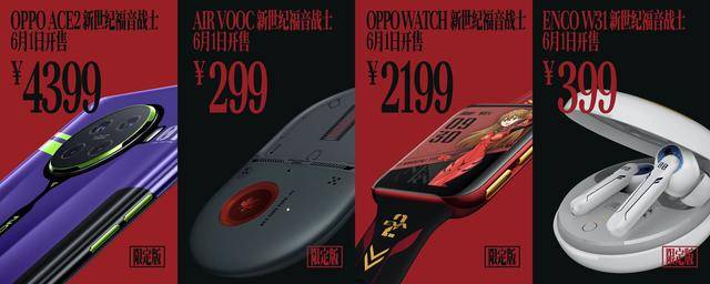 OPPO Ace2 EVA限定版全球限量 10000 台,售价4399元,OPPO Watch EVA限定版全球限量 10000 台,售价2199 元,OPPO Enco W31真无线耳机EVA 限定版全球限量10000台,售价399 元,OPPO 40W AirVOOC 无线闪充充电器EVA 定版全球限量5000 台,售价299 元。四款定制产品将于6 月1 日线上线下同步开售。游戏网