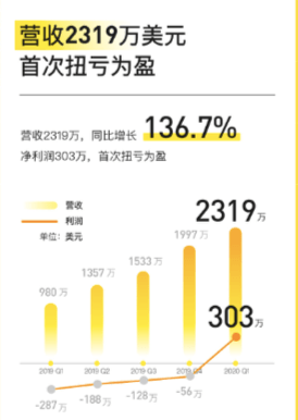 北京时间5月28日,美港股券商老虎证券发布了截至2020年3月31日的第一季度未经审计的财务报告。报告期内,公司实现营收2319万美元,同比大增136.7%,归母净利润为303万美元,这是老虎证券产品上线五年来首次实现整体盈利,公司正在告别“烧钱”时代。