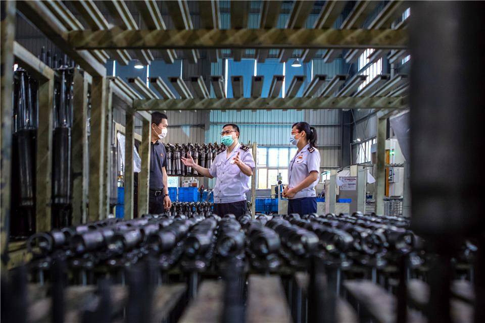 税务干部深入企业开展调研,了解企业复产情况并精准宣传惠企政策。杜开春摄