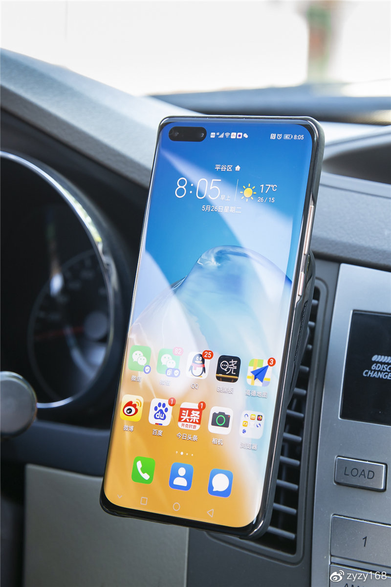 大家再来看这张GIF,吸附力还是蛮强大的,华为P40 Pro这样的大屏手机,拐弯下坡儿颠簸起来也不用担心吸附得不牢靠,这确实得益于强劲的磁吸设计,以及出风口夹的加固内紧密设计。