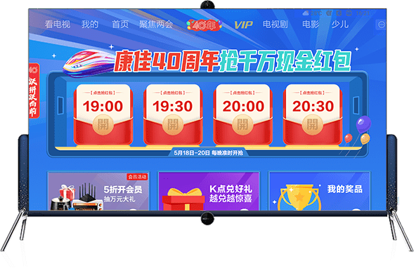 活动期间,康佳智能电视以新营销、新业务、新游戏等系列活动,与用户进行多维度互动。在新营销方面,上线“40年”专题频道,策划并推送创意开机视频,用户打开电视即可瓜分千万现金红包;同时开启语音口令抢红包、拼图游戏、做任务赢礼盒等系列宠粉玩法,并带来影视会员卡5折等各业务优惠活动。在新业务方面,用户不仅可以通过大屏观看短视频,在观看过程还能领取红包并免费兑换好礼。在新游戏方面,通过“夺宝弹珠”游戏为线上线下场景赋能,以“娱乐+社交+电商”的沉浸式体验进行场景触发、娱乐激活、全员互动,营造40周年庆活动美好氛围,引发千万用户携手庆生的热潮。