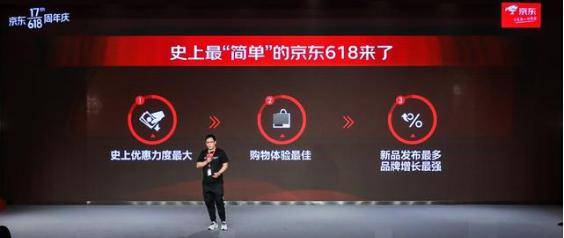 5月25日,在京东618全球年中购物节发布会上,京东集团副总裁、京东零售集团平台业务中心负责人韩瑞表示,会全力把今年京东618打造成史上“最简单”的购物狂欢节,做到优惠力度最大、购物体验最佳、新品发布最多品牌增长最强。