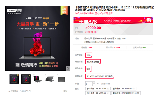据了解,小新Pro 13 2020锐龙版有两个配置:可选R5 4600U、R7 4800U两种处理器版本。