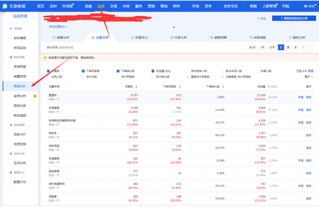 建议大家先开通商品360,具体针对单品数据分析,如果出现产品的访客数发生大幅度变化,能清楚知道每一天具体都做了什么。