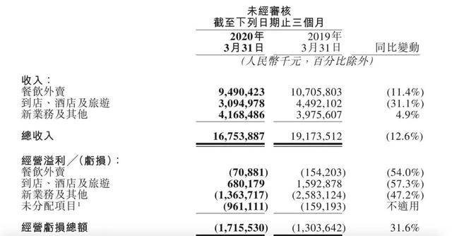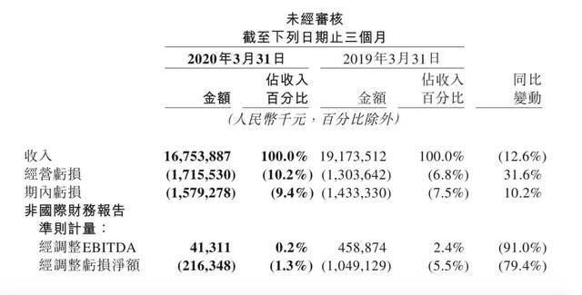 财报显示,美团点评Q1季度营收167.53亿元,同比减少12.6%;经营亏损17.16亿元,同比增加31.6%;调整后净亏损2.163亿元。