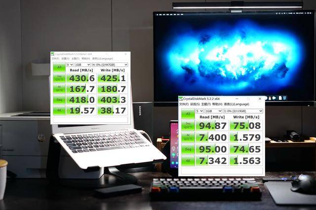 接口部分的性能也比较出色,SD卡(东芝极速卡,容量128GB)和东芝XS700固态硬盘(容量480GB),整个测试结果基本跟直接插在电脑上面没多少区别。StayGo笔记本电脑扩展坞较好的解决了苹果笔记本(大多数轻薄本)接口不足,拓展性不强的问题。