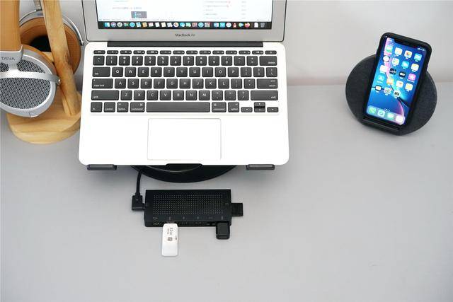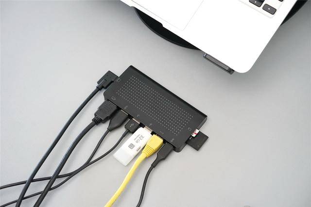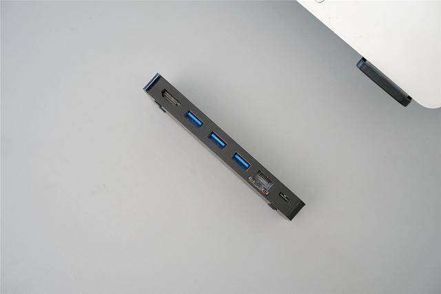 当StayGo笔记本电脑扩展坞插上所有接口后不难看出,StayGo笔记本电脑扩展坞在设计上还是很有特点的,接口布局,多而又不琳乱,对于喜欢整洁的朋友来说,优势明显。