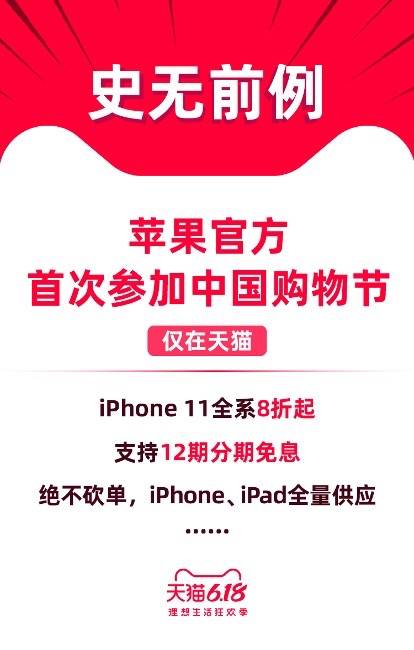 与此同时,苹果官宣的第一次大幅度降价将在天猫618出现。