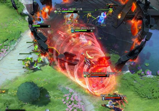 对线期,上路VG二人组并没有什么击杀能力,反倒是主学电的萨尔配合DP多次形成击杀。中路TA打帕克也是毫无压力,VG只有美杜莎发育良好,但与RNG两名核心相比相差甚远。