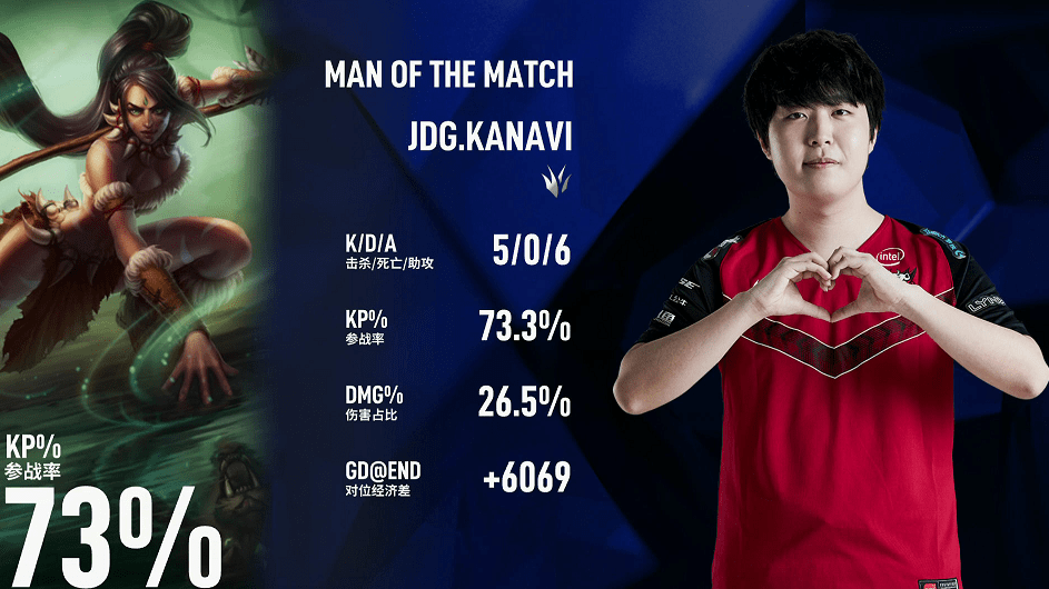 kanavi无解的豹女也当之无愧的收获了MVP,对位领先达到了夸张的6000+,这场比赛结束后IG也进入了生死边缘了,目前的形势DRX2分、GEN和JDG1分、IG0分,若是接下来IG战胜GEN,拿下生死局,DRX赢下JDG,那么仍旧存在三队加赛可能。