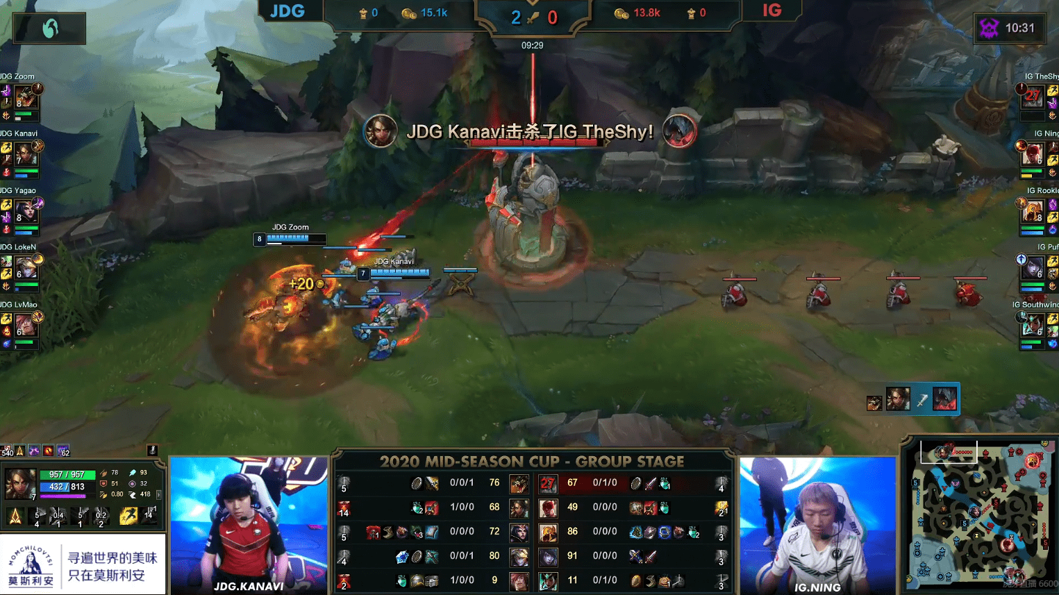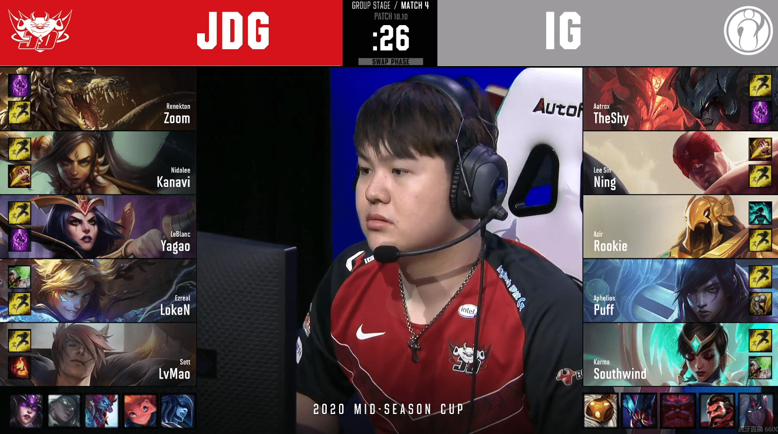 在今天的MSC季中杯小组赛,JDG对战IG,这局比赛中JDG是选出了强势的上中野英雄鳄鱼、妖姬以及豹女,并且给绿毛拿到了能带节奏的辅助腕豪,而IG则是选择了2大后期C沙皇以及厄斐琉斯,上路给theshy拿到剑魔。