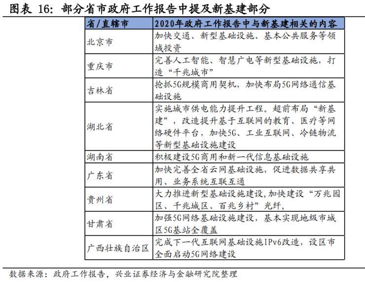 这是2020年政府工作报告关于“新基建”的表述, “新基建”获得前所未有的政策加持。