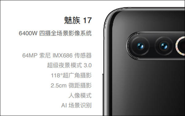 前面已经提到了魅族17航母限定版使用了独树一帜的防爆盾样式的横排四摄镜头。主摄为6400W像素索尼IMX686,这是索尼2020年的旗舰级产品,支持3倍光学变焦和8倍数码变焦。