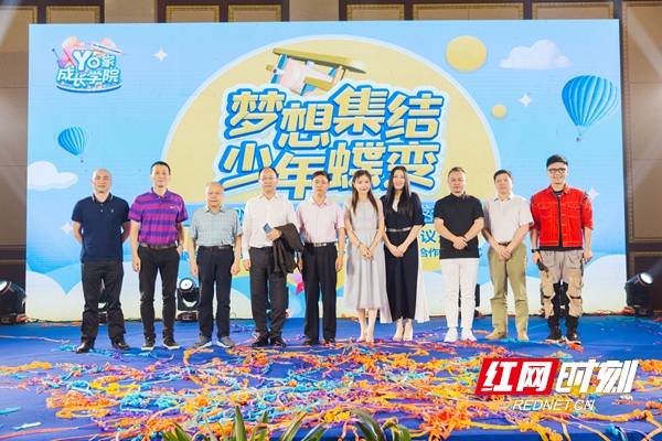 红网时刻5月30日讯(记者 胡弋 通讯员 郑向宇 摄影 向一鸣)梦想集结,少年蝶变。5月29日,YO家成长学院产品IP矩阵发布会暨湖南省演艺集团战略合作签约、湖南筑梦传承文化传媒有限公司《少年YO声》节目合作签约仪式在长沙举行。