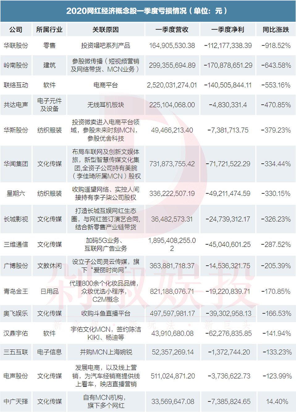 他们多以收购MCN机构为主,想要依靠互联网平台来增收,或扩张业务版图。但从业绩来看,很明显,网红经济板块业务并没有帮上太多忙。