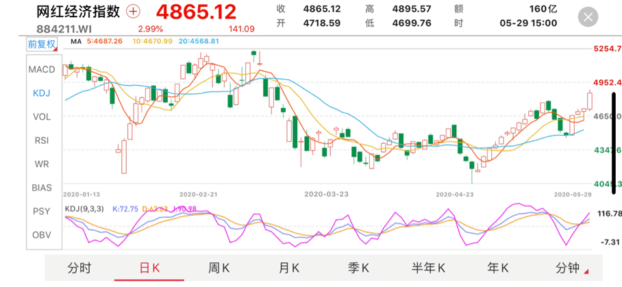 Wind等第三方机构还专门编制了“网红经济指数”,将数十家网红概念股的走势情况涵盖其中。