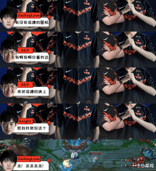 之后阿水还问他们有没有TES的图标,然后全队都换上了,等胜利的时候所有人都要把图标亮出来。在TES推掉两个门牙塔后,阿水看到独自苟活的Canna后,直接不管基地了,一边狂喊“杀杀杀”一边冲泉水把Canna给杀了,最后利用水银解了身上的“晦气”,其他几个队员都非常开心,这就是T1吗?这就是LCK吗?他们是不是要回家了。