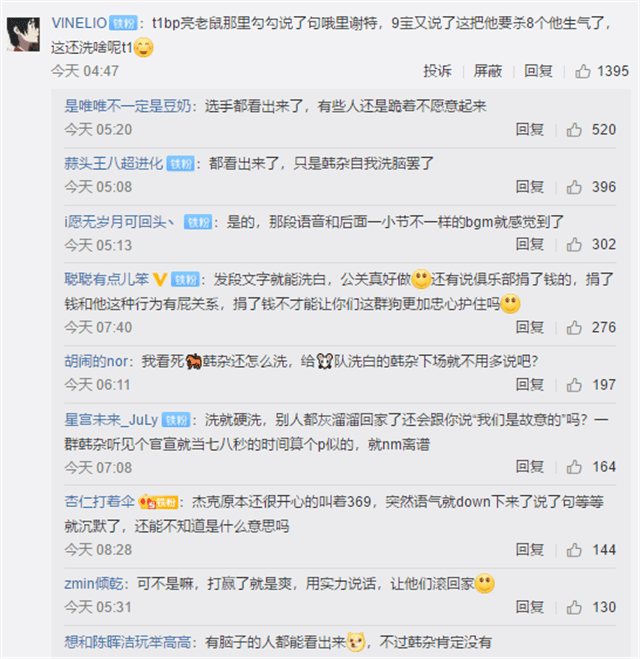 有人质问t1战队有没有职业素养,为什么要把无关的东西带到赛场上,让纯粹的比赛变得不一样了?还有人表示:希望t1战队不要编造什么文字澄清了,只要发出比赛录音,什么都明白了。