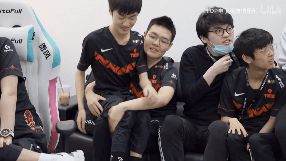 《滔滔不绝》开幕对粉丝就是一记心灵重击,369拉着Knight让他坐自己腿上,Knight反手勾住369脖子让自己坐得更稳;阿水在一旁躺椅子上,两手交叉垫着脑袋,两腿曲着踩椅子末端,用粉丝话说“喻文波又装杯了”,队霸实锤。而在选手们坐姿各异的时候,教练白色月牙正在对着小黑板和大家讲解战术BP,视频开幕的镜头实在是槽点太多了。