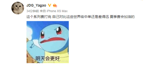 原标题:JDG止步季中杯,绿毛为兄弟战队加油助威,牙膏承认自己的不足!