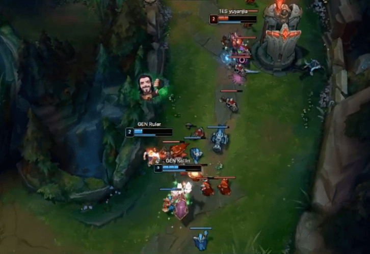24分钟。双方于野区混战,凯南给机会,被TES击杀四人,逃跑的尺帝也被左手追死,TES直接推掉基地,取得2-0的领先。