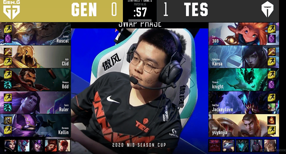 GEN在第一局惨败之后,开始改变思路,选择了一套以发育为主的后期阵容,这套阵容也是他们最擅长,只要拖到后期赢面就很大,而TES就要尽力在前期抓到人,拿到优势,不给对手拖时间。