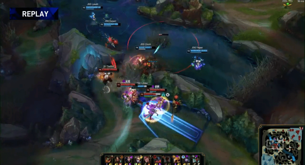 开局JDG直接进入IG野区打出IG辅助闪现,4分钟由于辅助没闪自己交出一血,9分钟JDG打野抓上,Theshy送出人头