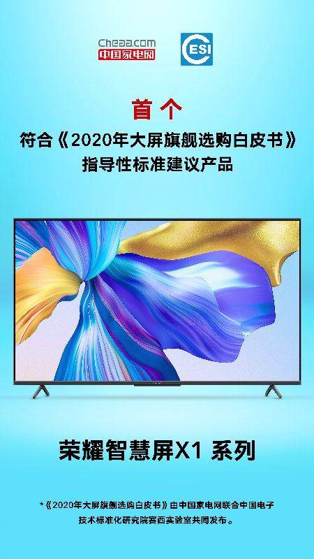 荣耀智慧屏X1凭借其硬核实力再度获得认可,在中国家电网联合中国电子技术标准化研究院赛西实验室共同发布《2020年大屏旗舰选购白皮书》,从“核心性能标准”、“内容资源标准”、“智慧功能标准”等三大维度全面提出了选购标准建议,荣耀智慧屏X1屏实力获得首个建议产品,能获得权威机构认可,离不开荣耀对产品技术的研磨。