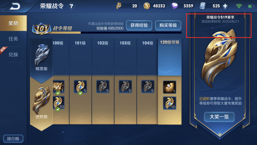 先估计下赛季结束的时间吧,荣耀战令的结束时间是6月21号,推迟1~2周就是新赛季的时间,其次是本赛季的战令仅剩3周了!需要120级才能领取最终奖励,还没达到这个等级的小伙伴可要抓紧了!