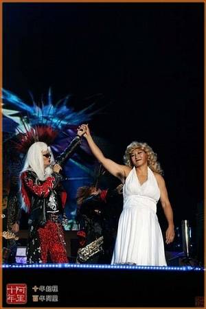 阿里巴巴十周年庆典上,创始人马云与蔡崇信正在表演/图源网络,如有侵权,联系删除
