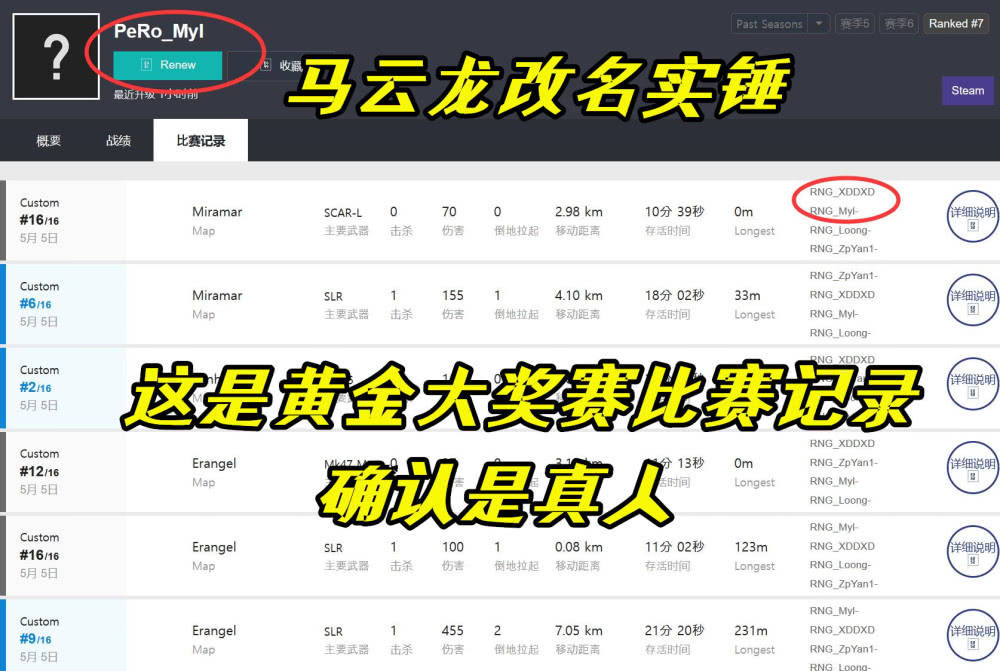 有网友扒出了马云龙的游戏ID:PeRo_myl。