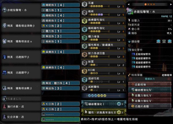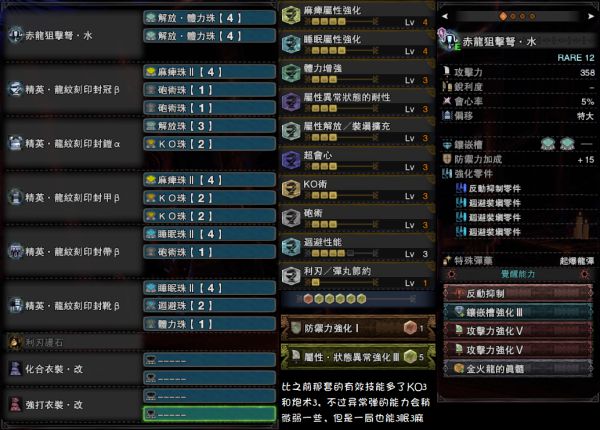 比较可惜的是会心是基础10%+看破40%+弱特50%需要软化,而不想软化的话就需要客制3次会心,这样的话是基础30%+看破40%+弱特30%,但是这样积蓄值会少15点,这种东西的取舍就看各位的喜好了。