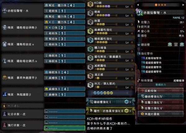 所需要考虑的有点多,而且冥赤水还能觉醒套装技能,是出金火4还是冥赤5还是干脆不出也比较难选。金火4单发效率更高但是要出会心技能,冥赤5不用出会心技能,什么都不出的话,能出真利刃,所以我干脆全配出来各位自己选。