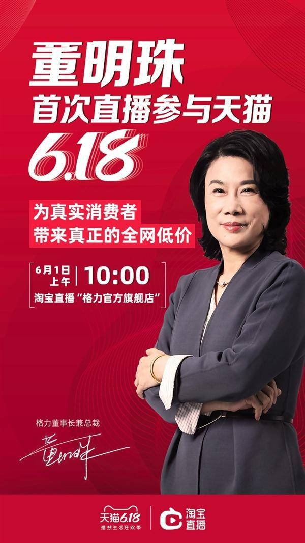 原标题:“带货女王”董明珠将首次在淘宝直播参与天猫6·18